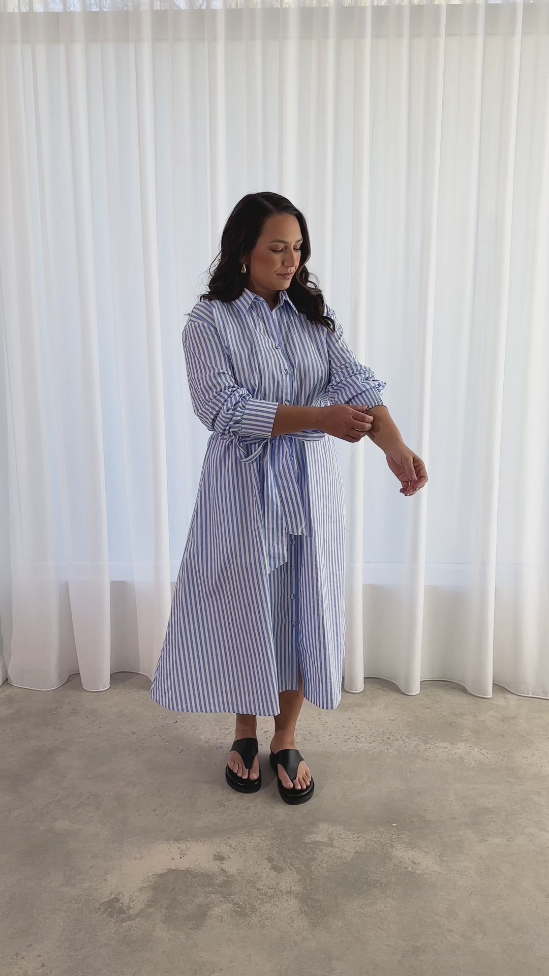 Andrea Cotton Shirt Dress in Blue & White Pinstripe